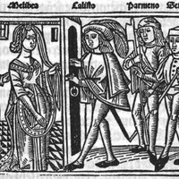 [Act XII - Calisto, Joined by Sempronio and Pármeno, Talks to Melibea Through the Door of Her House]