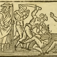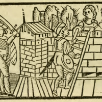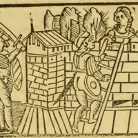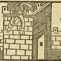 [Act XII (Second Illustration) – Pármeno and Sempronio Murder Celestina and Jump from a Window, Where They Are Caught by the Alguacil’s Men]