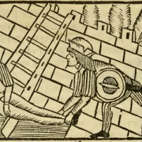 [Act XIX (First Illustration) – Calisto Ascends Toward Melibea and Lucrecia While Sosia and Tristan Stand Guard (Repeated)]