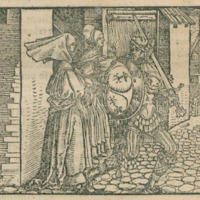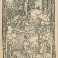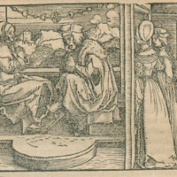 [Act XXI (Second Illustration) – Pleberio Telling Alisa About the Death of Melibea while Lucrecia Stands at a Distance]