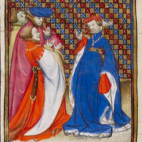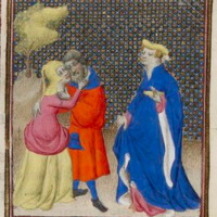 Agamemnon frappe Egisthe, tandis que Clytemnestre l’aide à enlever son manteau