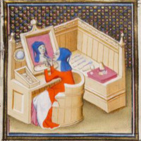 Léonce à sa table d’étude, courtisée