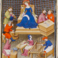 Minerve et ses inventions : peigne à carder, métier à tisser, forge, huile des olives, flûte, calcul
