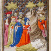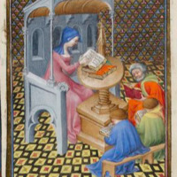 Sappho, à son pupitre, devant ses disciples