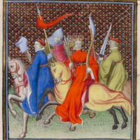 Penthésilée, reine des Amazones, chevauchant avec ses compagnes