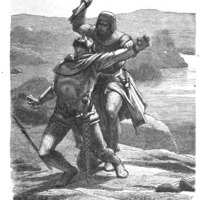 [The Cid showing count Lozano's head to the count's father]