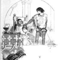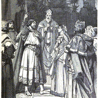 [The Cid with king Alfonso in the cloister of San Pedro de Cardeña]