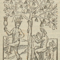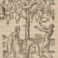 [Indigenous Brazilian men pick fruit from a tree]