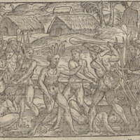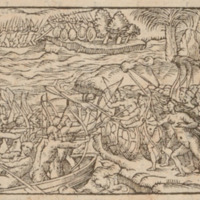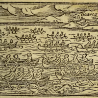 [Tupinambá people canoe off the coast of Brazil]