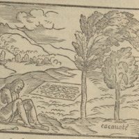Albero, che produce il cacauate, & come gl’Indiani di due legni cauano fuoco.