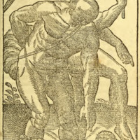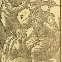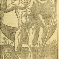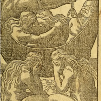 [A European man and a Tupinambá woman weep into their hands while a Tupinambá man stands behind them]