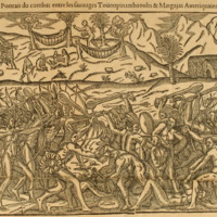 Portrait du combat entre les sauuages Toüoupinambaoults & Margajas Ameriquains