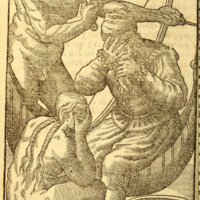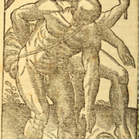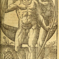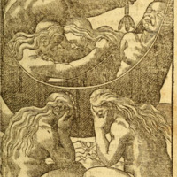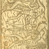 [A European man and a Tupinambá woman weep into their hands while a Tupinambá man stands behind them]