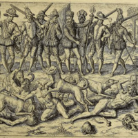 Indianer können die Spanier Tyranney nicht länger leiden, erwürgen sich selbs.