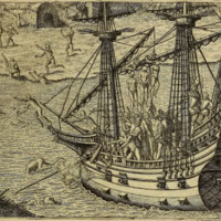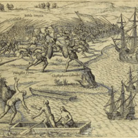 Indianer da sie wolten probieren ob die Spanier unsterbliche Leuth weren, erseuffen sie einen Spanier Salsedum genandt im Meer.