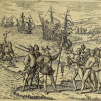 Columbus als er in India erstlich ankommen, wirdt von den Einwohnern mit grossen Geschenk verehret und begabet auffgenommen.
