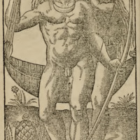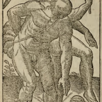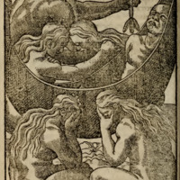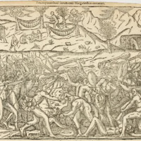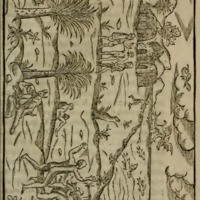 [A European man and a Tupinambá woman weep into their hands while a Tupinambá man stands behind them]