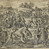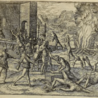 Petrus Aluaradus lässet in abwesen deß Cortesij die Indianer zu Mexico, als sie ihr Fest hielten, mit blosen Wehren uberfallen und erwürgen, und die güldene Armbänder damit sie geziert waren ihnen abziehen.