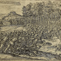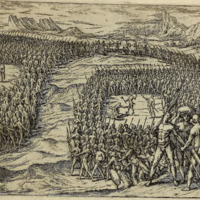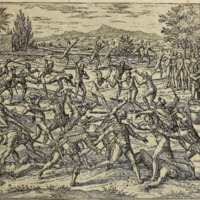 Die Indianer greissen die Spanier an, schlagen ihren Obersten zu tod, entlich werden sie doch verjagt. Aber es kommen andere frische Indianer, die uberfallen und uberwinden die Spanier widerumb, in dem bekommen die Spanier ein hinderhalt, und welche noch, unverletzt waren auß der Schlacht kommen, dieselbe ziehen darvon.