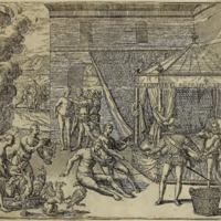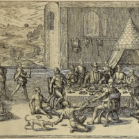 Der Spanische Gubernator Diego Gottierez berufft die Cacicos oder Könische der Landschafft Sucre, Chiappa unnd von andern Orten her, so zu ihm waren kommen, ihn zu besuchen, zur Malzeit.