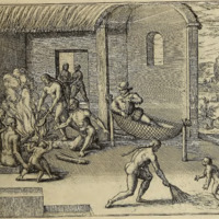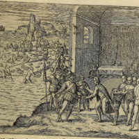 Als etliche Kauffleut in einer Einöde kein Proviant mehr hatten, werden sie auß not gezwungen, bey nacht zu etlichen Indianern in ihre Hütten ongewarnter sachen zu gehen.