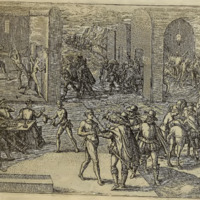 Franciscus Monteius wird Gubernator in der Provintz Yücatana, einer auß den Indianischen Cacicis nimt sich grosser Freundschafft an, als ob er ein Verbündnuß mit im machen wolt, understehet sich aber den Monteium mit einem Gebel zu erhawen.