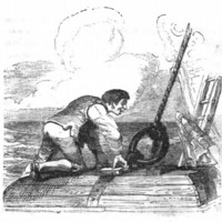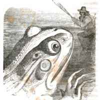 [A frog examines Gulliver while he sails in the court of Brobdingnag]