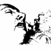 [A Lilliputian tickles Gulliver’s nose with his sword]