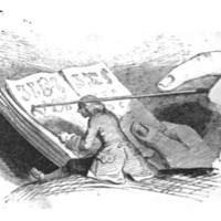 [Glumdalclitch teaches Gulliver to read the language of the giants from Brobdingnag]
