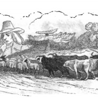 [Flock of cattle overlooked by Gulliver]