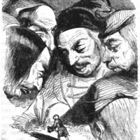 [Giants on Brobdingnag crowd around to examine Gulliver]
