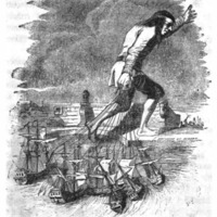 [Gulliver pulling Blefuscudian ships back to Blefuscu]