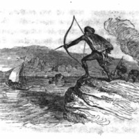 [native peoples of New Holland shoot arrows at Gulliver]