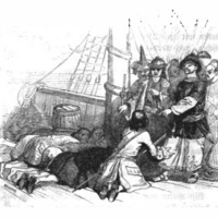 [Gulliver begs the captain of a Dutch pirate ship for mercy]