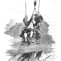 [Gulliver is raised up to the floating island of Laputa on a chair]
