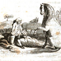 [Gulliver passes out after hearing he must leave the Country of the Houyhnhnms]