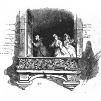 [The Lilliputian Empress and her attendants looks out the window after the fire]