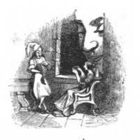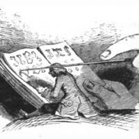 [Gulliver learns to read the language of the Giants from Brobdingnag from Glumdalclitch]