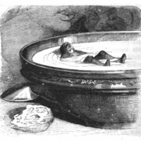 [Gulliver floating in a bowl of milk]