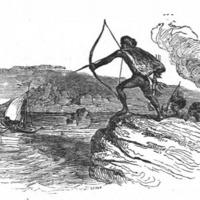 [native peoples of New Holland shoot arrows at Gulliver]