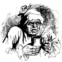 [a sick man holds a cup of medicine]