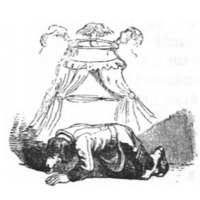 [a servant of the ruling Yahoo licks his feet]
