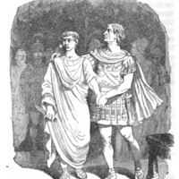 [Governor of Glubbdubdrib and Gulliver speak with Caesar and Brutus]