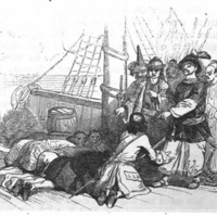 [Gulliver begs for mercy from the captain of a pirate ship]