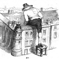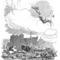 [Gulliver climbs over the wall of the Imperial palace in Mildendo]