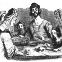 [Gulliver eats with the farmer’s family]
