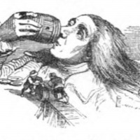 [Gulliver drinks from a barrel of wine]