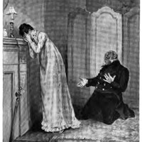 The old man fell down on his knees and leered at her like a satyr