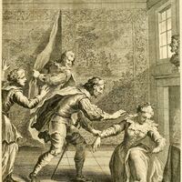 [Fight between Don Quixote, Maritornes, and the muleteer]