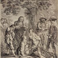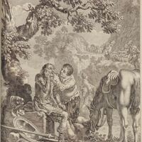 [Don Quixote prevents Sancho Panza whipping himself]